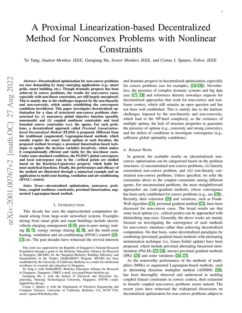Decentralized optimization for non-convex problems are now demanding by many emerging applications (e.g., smart grids, smart building, etc.). Though dramatic progress has been achieved in convex problems, the results for non-convex cases, especially with non-linear constraints, are still largely unexplored. This is mainly due to the challenges imposed by the non-linearity and non-convexity, which makes establishing the convergence conditions bewildered. This paper investigates decentralized optimization for a class of structured non-convex problems characterized by: (i) nonconvex global objective function (possibly nonsmooth) and (ii) coupled nonlinear constraints and local bounded convex constraints w.r.t. the agents. For such problems, a decentralized approach called Proximal Linearizationbased Decentralized Method (PLDM) is proposed. Different from the traditional (augmented) Lagrangian-based methods which usually require the exact (local) optima at each iteration, the proposed method leverages a proximal linearization-based technique to update the decision variables iteratively, which makes it computationally efficient and viable for the non-linear cases. Under some standard conditions, the PLDM global convergence and local convergence rate to the epsilon-critical points are studied based on the Kurdyka-Lojasiewicz property which holds for most analytical functions. Finally, the performance and efficacy of the method are illustrated through a numerical example and an application to multi-zone heating, ventilation and air-conditioning (HVAC) control.