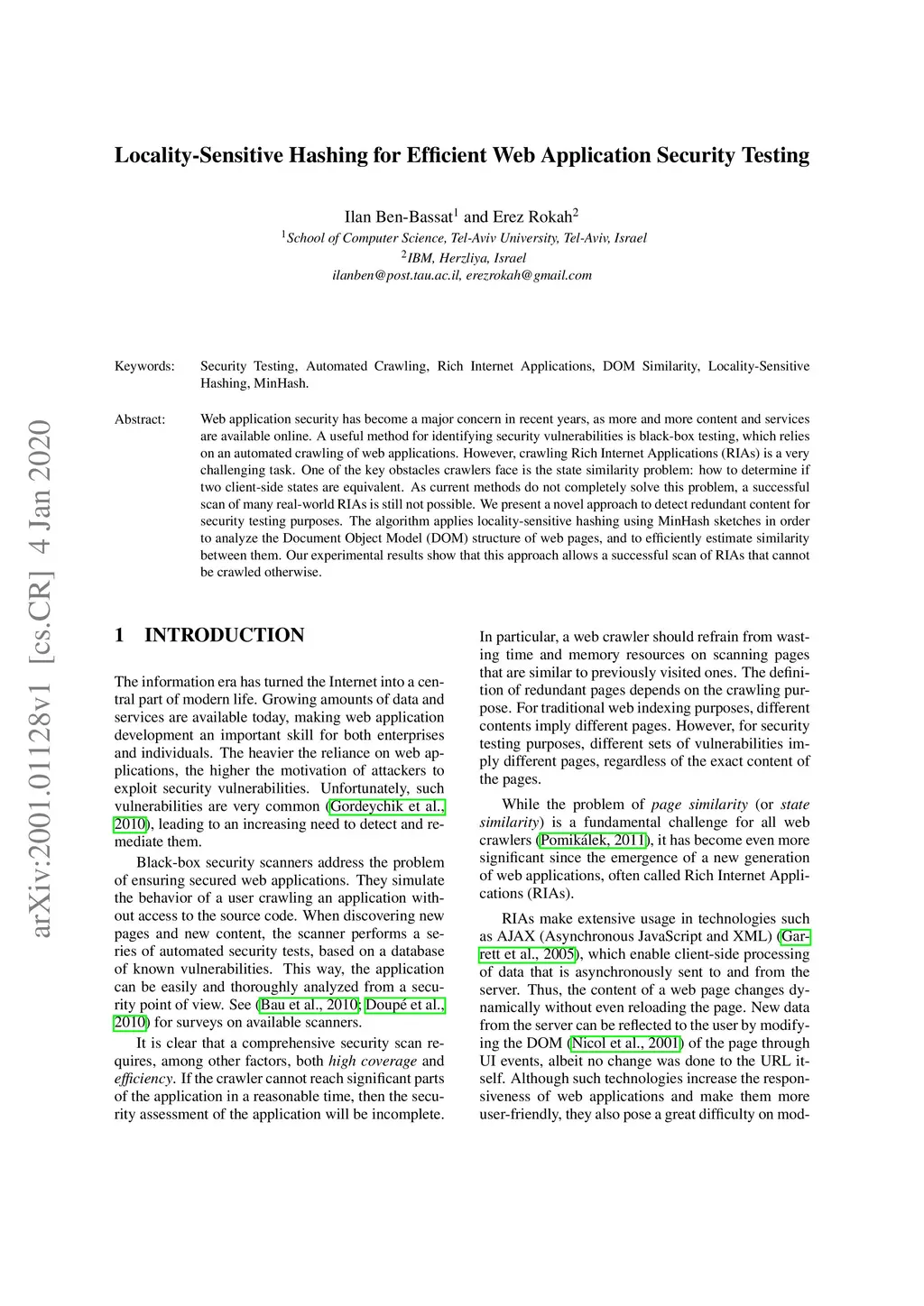 Web application security has become a major concern in recent years, as more and more content and services are available online. A useful method for identifying security vulnerabilities is black-box testing, which relies on an automated crawling of web applications. However, crawling Rich Internet Applications (RIAs) is a very challenging task. One of the key obstacles crawlers face is the state similarity problem: how to determine if two client-side states are equivalent. As current methods do not completely solve this problem, a successful scan of many real-world RIAs is still not possible. We present a novel approach to detect redundant content for security testing purposes. The algorithm applies locality-sensitive hashing using MinHash sketches in order to analyze the Document Object Model (DOM) structure of web pages, and to efficiently estimate similarity between them. Our experimental results show that this approach allows a successful scan of RIAs that cannot be crawled otherwise.