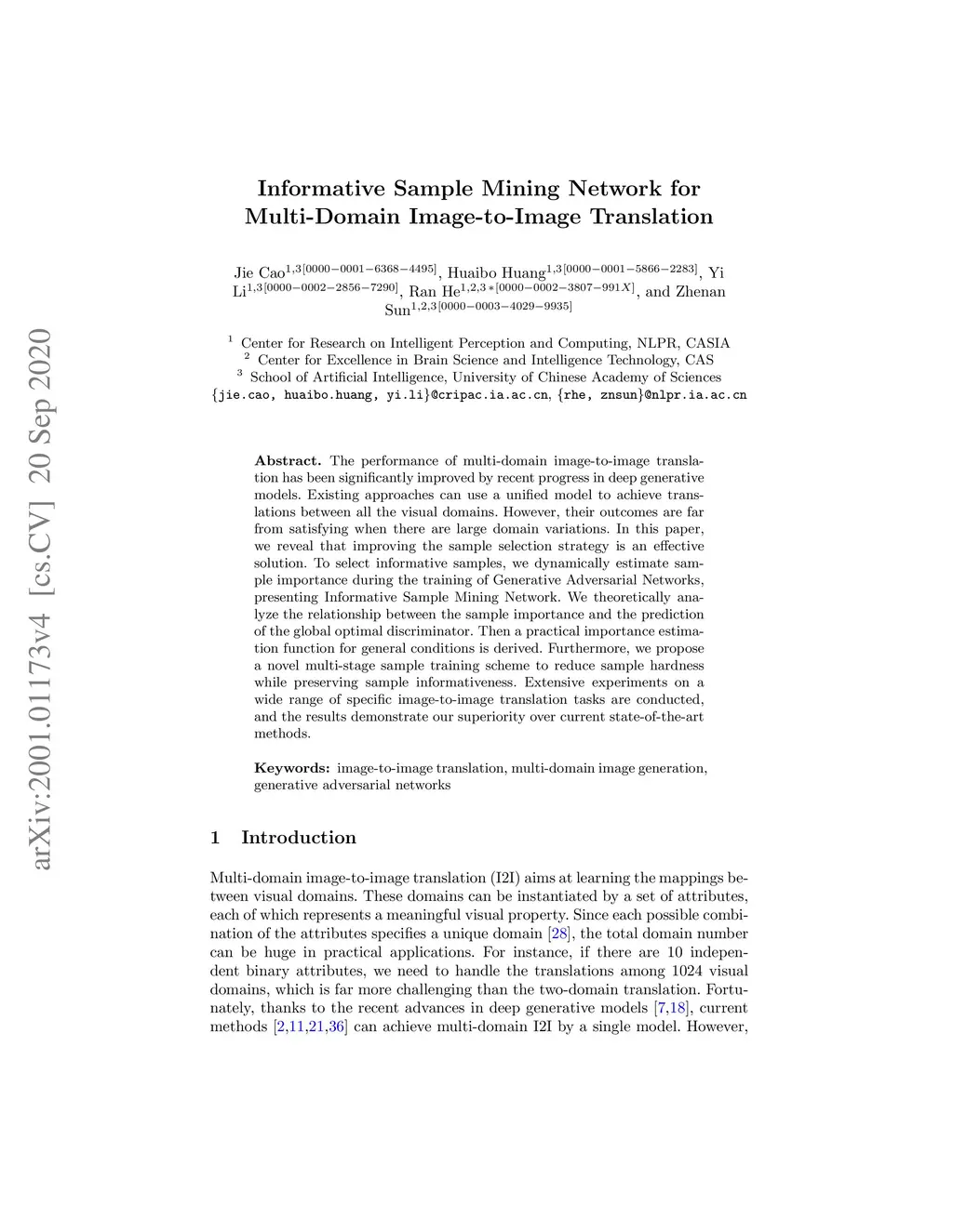 Informative Sample Mining Network for Multi-Domain Image-to-Image