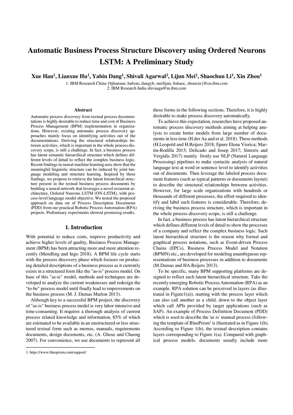 Automatic Business Process Structure Discovery using Ordered Neurons