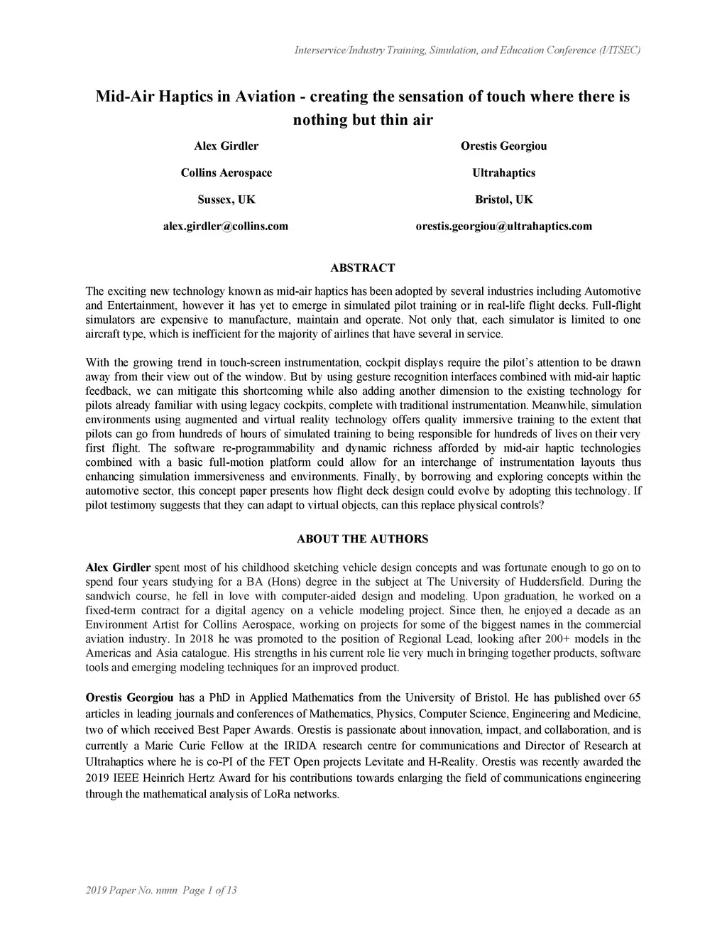 Mid-Air Haptics in Aviation -- creating the sensation of touch where