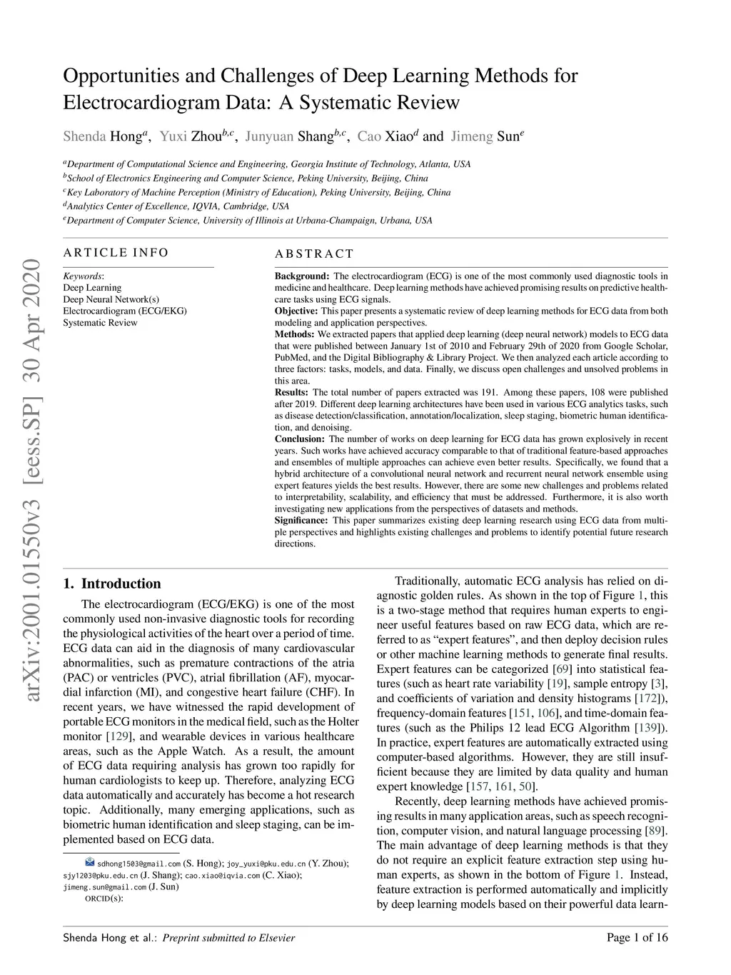 Electrocardiogram Data: A Systematic Review