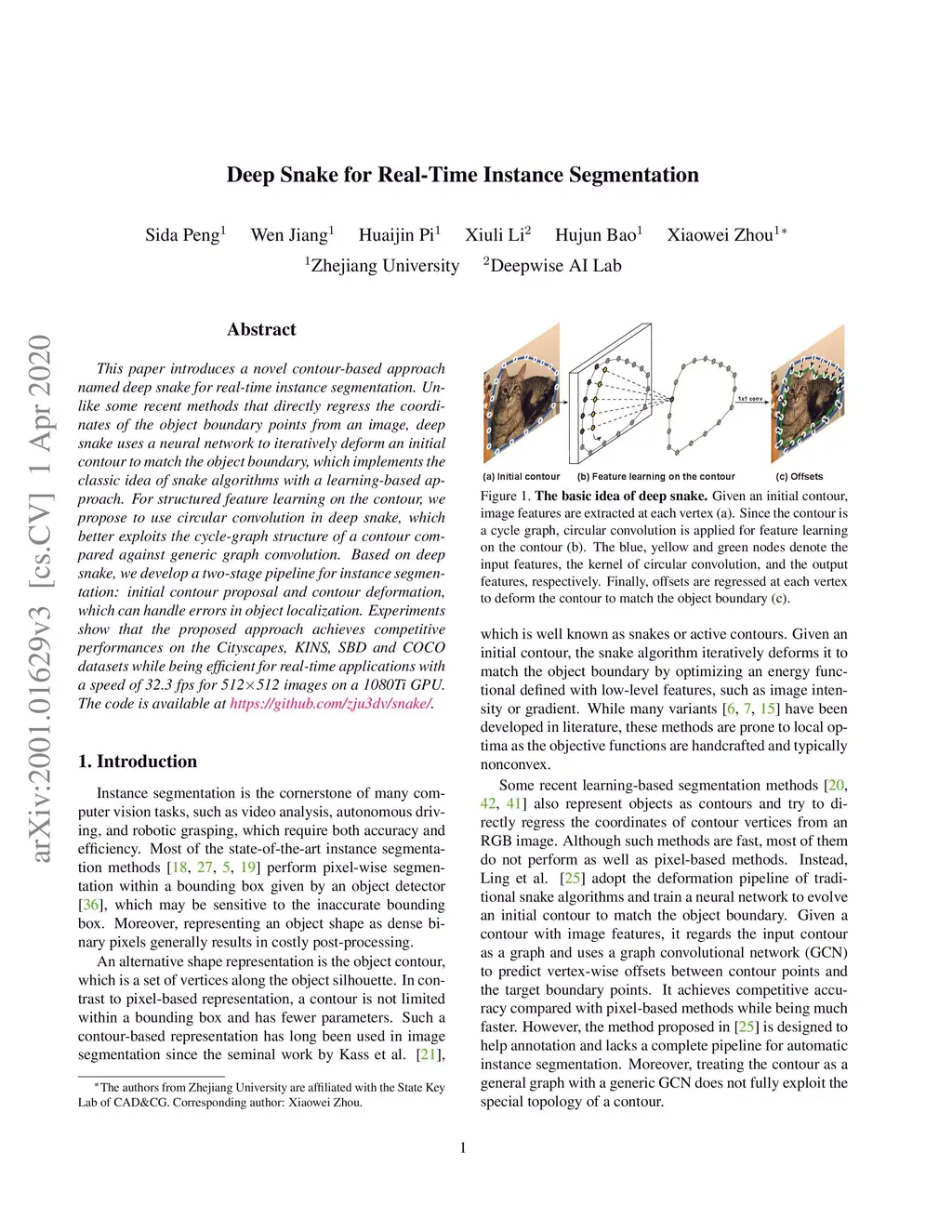 Deep Snake for Real-Time Instance Segmentation