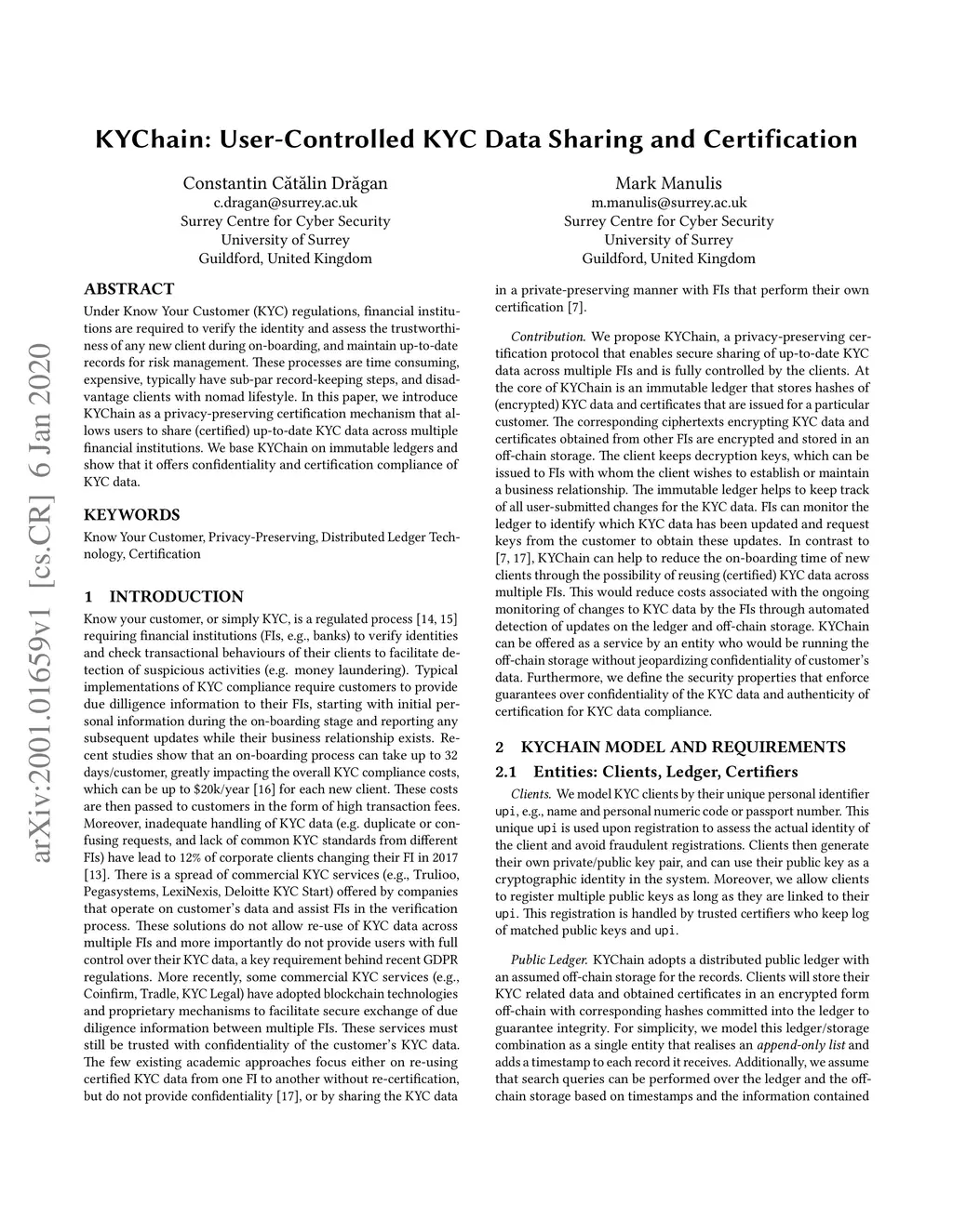 KYChain: User-Controlled KYC Data Sharing and Certification