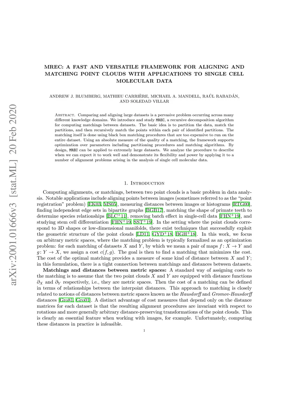 Comparing and aligning large datasets is a pervasive problem occurring across many different knowledge domains. We introduce and study MREC, a recursive decomposition algorithm for computing matchings between data sets. The basic idea is to partition the data, match the partitions, and then recursively match the points within each pair of identified partitions. The matching itself is done using black box matching procedures that are too expensive to run on the entire data set. Using an absolute measure of the quality of a matching, the framework supports optimization over parameters including partitioning procedures and matching algorithms. By design, MREC can be applied to extremely large data sets. We analyze the procedure to describe when we can expect it to work well and demonstrate its flexibility and power by applying it to a number of alignment problems arising in the analysis of single cell molecular data.