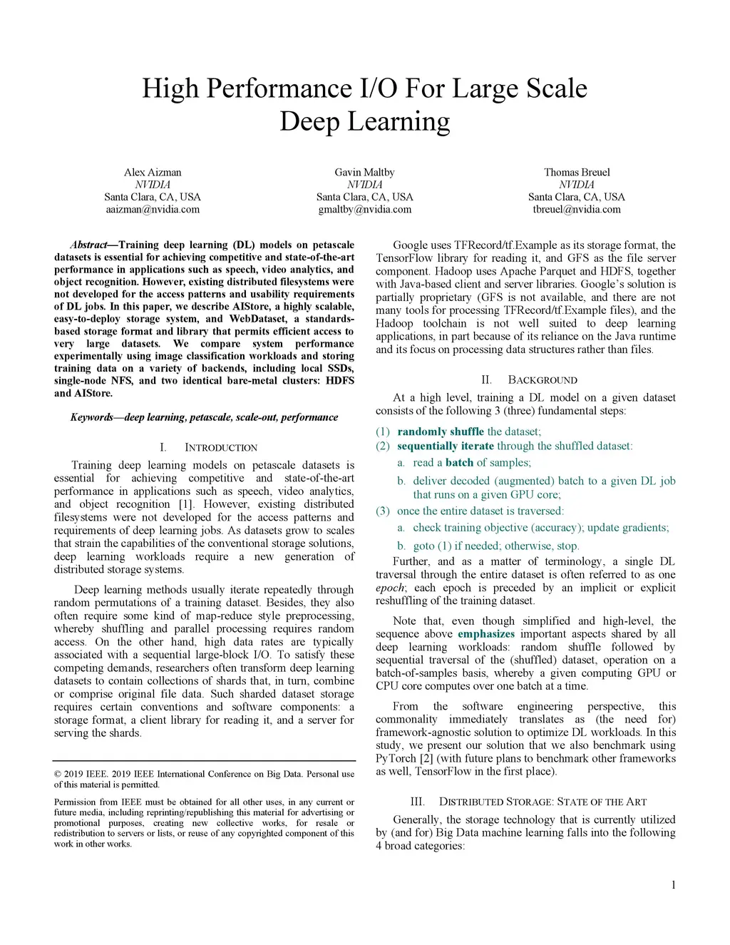 Training deep learning (DL) models on petascale datasets is essential for achieving competitive and state-of-the-art performance in applications such as speech, video analytics, and object recognition. However, existing distributed filesystems were not developed for the access patterns and usability requirements of DL jobs. In this paper, we describe AIStore, a highly scalable, easy-to-deploy storage system, and WebDataset, a standards-based storage format and library that permits efficient access to very large datasets. We compare system performance experimentally using image classification workloads and storing training data on a variety of backends, including local SSDs, single-node NFS, and two identical bare-metal clusters: HDFS and AIStore.