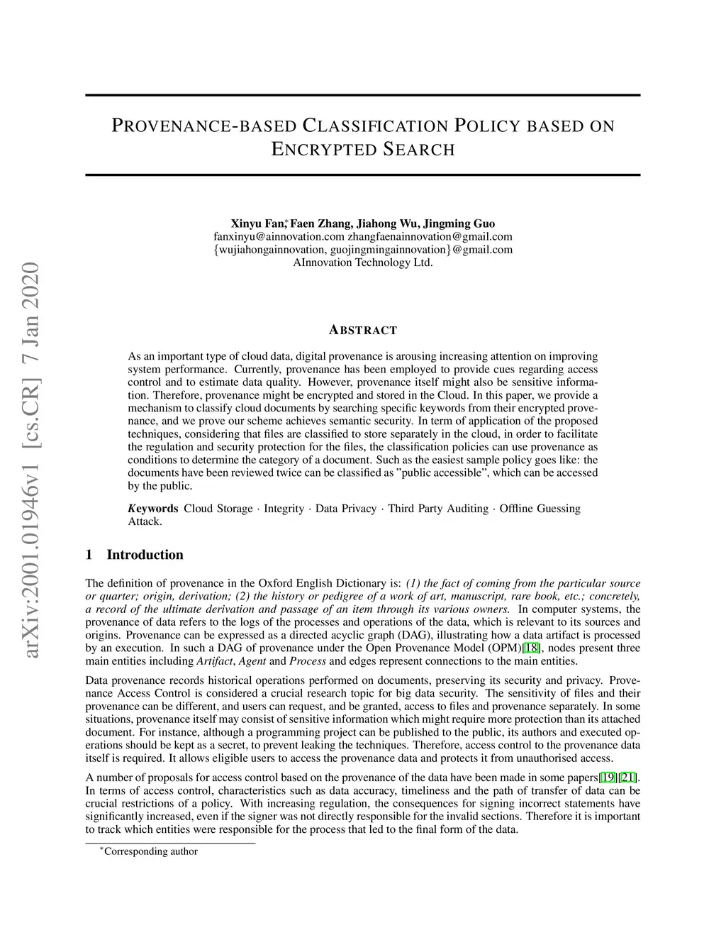 Provenance-based Classification Policy based on Encrypted Search
