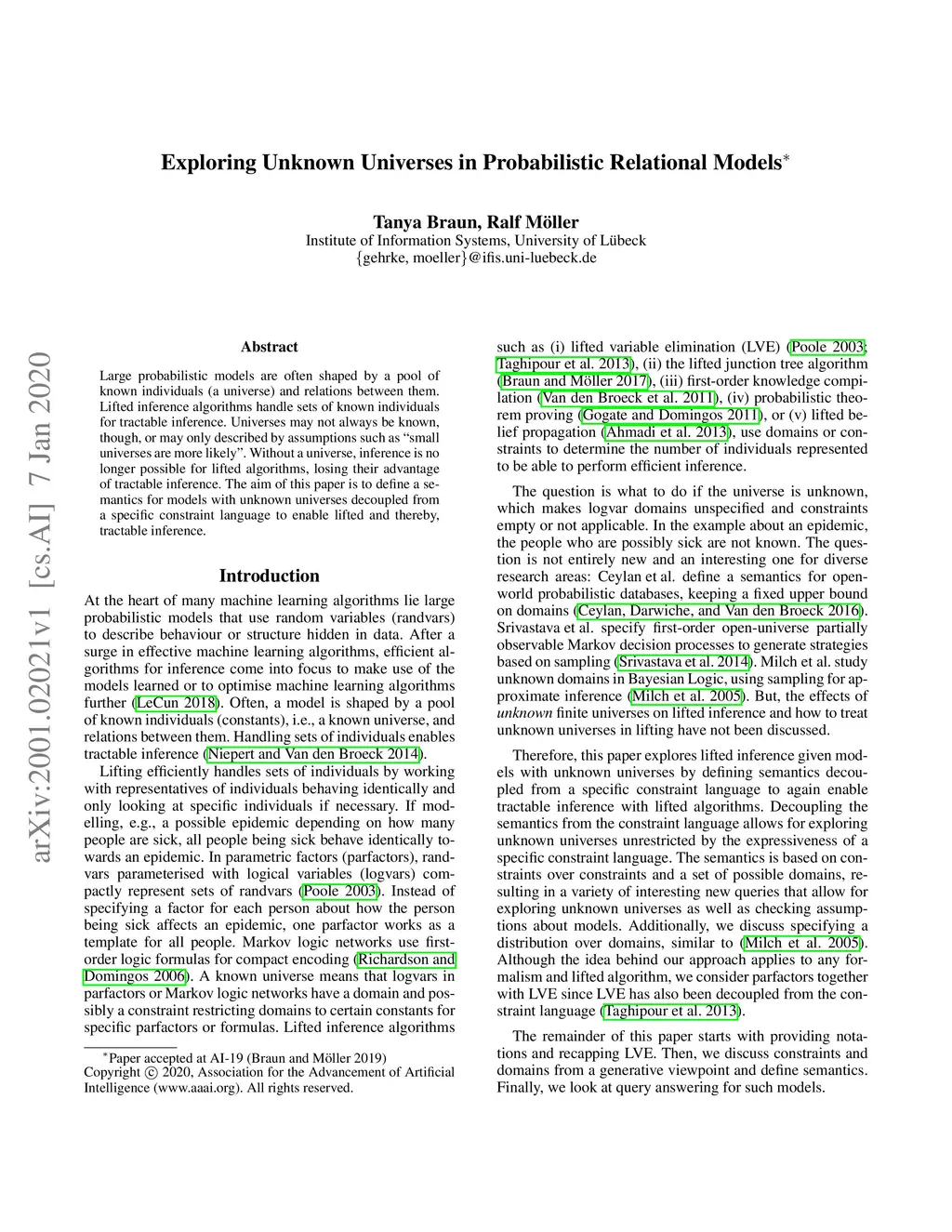 Large probabilistic models are often shaped by a pool of known individuals (a universe) and relations between them. Lifted inference algorithms handle sets of known individuals for tractable inference. Universes may not always be known, though, or may only described by assumptions such as "small universes are more likely". Without a universe, inference is no longer possible for lifted algorithms, losing their advantage of tractable inference. The aim of this paper is to define a semantics for models with unknown universes decoupled from a specific constraint language to enable lifted and thereby, tractable inference.