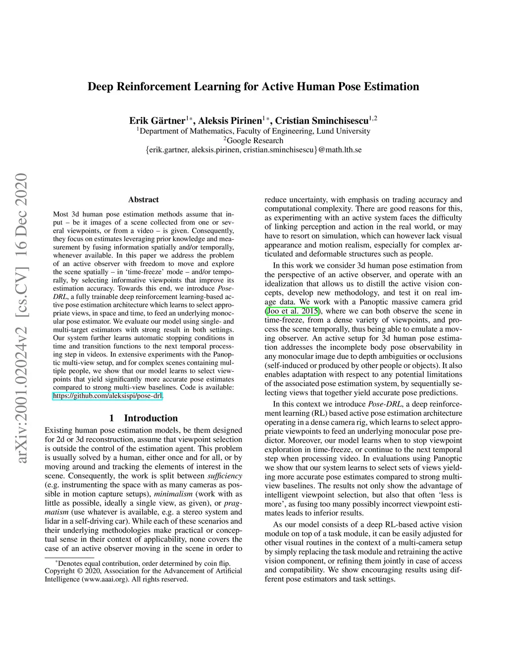 Deep Reinforcement Learning for Active Human Pose Estimation