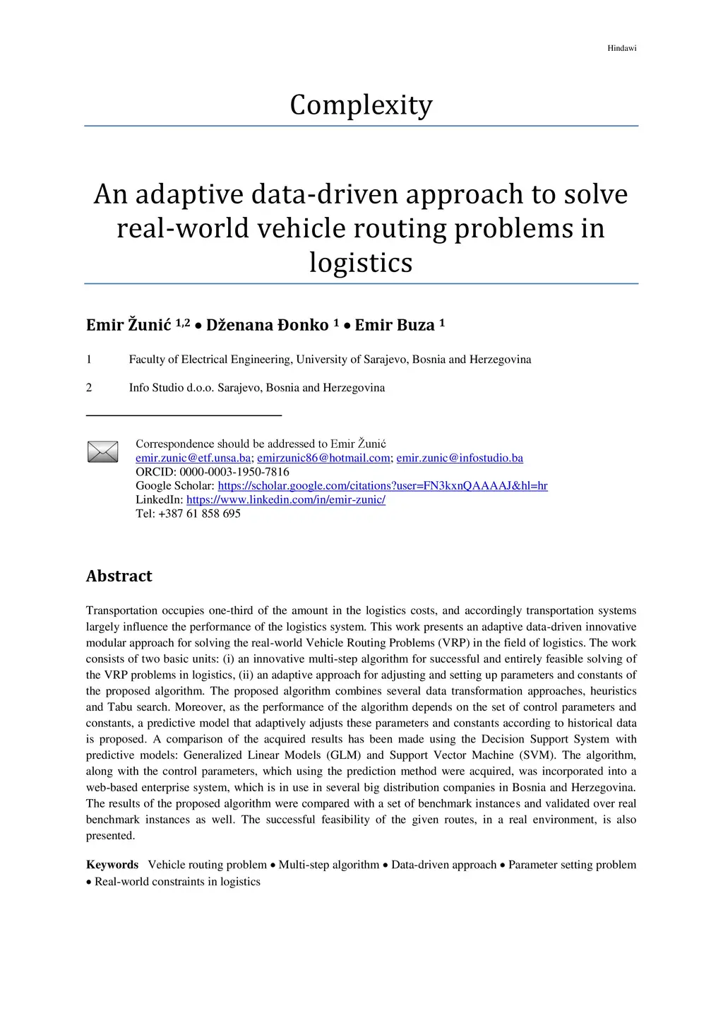 Transportation occupies one-third of the amount in the logistics costs, and accordingly transportation systems largely influence the performance of the logistics system. This work presents an adaptive data-driven innovative modular approach for solving the real-world Vehicle Routing Problems (VRP) in the field of logistics. The work consists of two basic units: (i) an innovative multi-step algorithm for successful and entirely feasible solving of the VRP problems in logistics, (ii) an adaptive approach for adjusting and setting up parameters and constants of the proposed algorithm. The proposed algorithm combines several data transformation approaches, heuristics and Tabu search. Moreover, as the performance of the algorithm depends on the set of control parameters and constants, a predictive model that adaptively adjusts these parameters and constants according to historical data is proposed. A comparison of the acquired results has been made using the Decision Support System with predictive models: Generalized Linear Models (GLM) and Support Vector Machine (SVM). The algorithm, along with the control parameters, which using the prediction method were acquired, was incorporated into a web-based enterprise system, which is in use in several big distribution companies in Bosnia and Herzegovina. The results of the proposed algorithm were compared with a set of benchmark instances and validated over real benchmark instances as well. The successful feasibility of the given routes, in a real environment, is also presented.