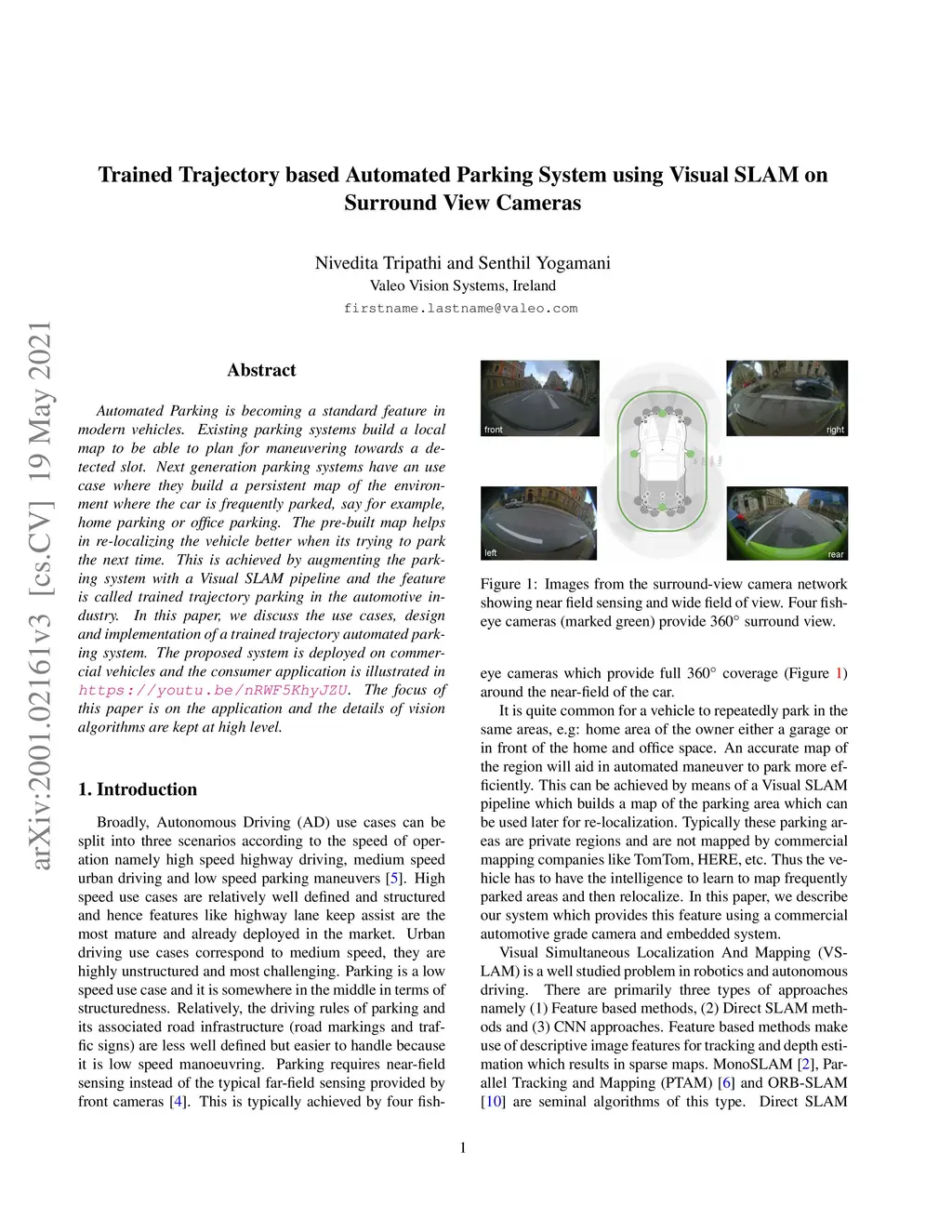 Automated Parking is becoming a standard feature in modern vehicles. Existing parking systems build a local map to be able to plan for maneuvering towards a detected slot. Next generation parking systems have an use case where they build a persistent map of the environment where the car is frequently parked, say for example, home parking or office parking. The pre-built map helps in re-localizing the vehicle better when its trying to park the next time. This is achieved by augmenting the parking system with a Visual SLAM pipeline and the feature is called trained trajectory parking in the automotive industry. In this paper, we discuss the use cases, design and implementation of a trained trajectory automated parking system. The proposed system is deployed on commercial vehicles and the consumer application is illustrated in \url{https://youtu.be/nRWF5KhyJZU}. The focus of this paper is on the application and the details of vision algorithms are kept at high level.