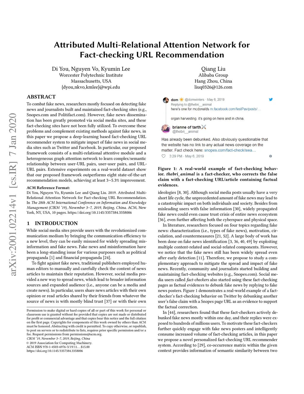Attributed Multi-Relational Attention Network for Fact-checking URL
