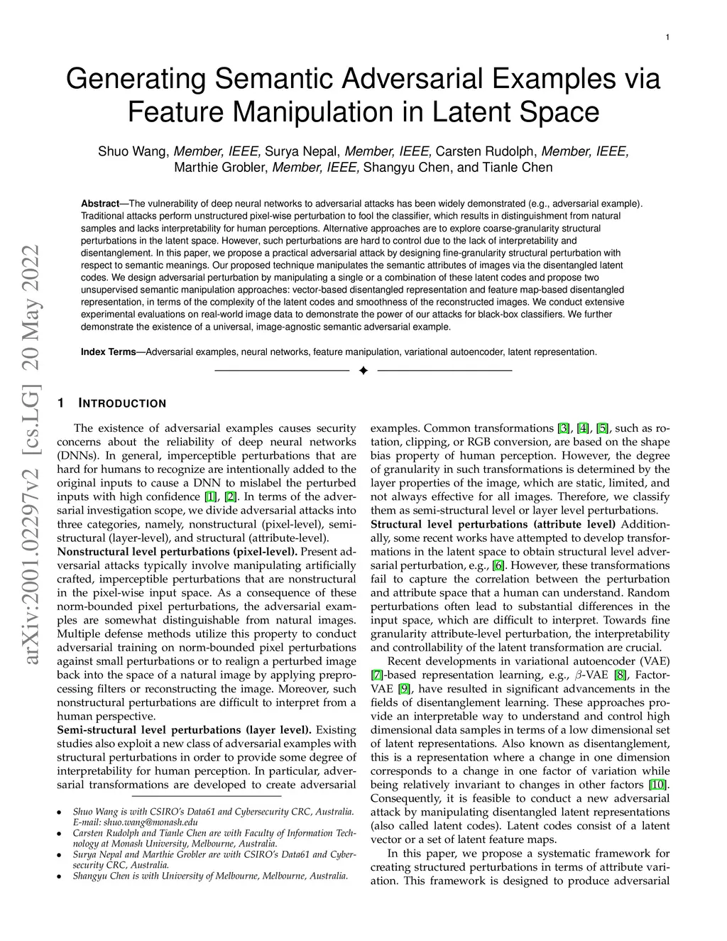 Generating Semantic Adversarial Examples via Feature Manipulation