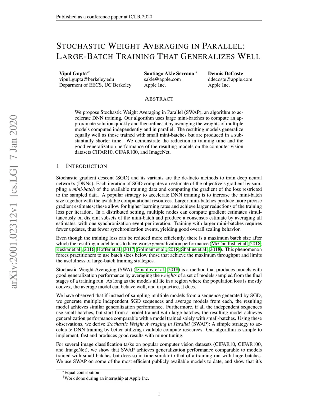 Stochastic Weight Averaging in Parallel: Large-Batch Training that