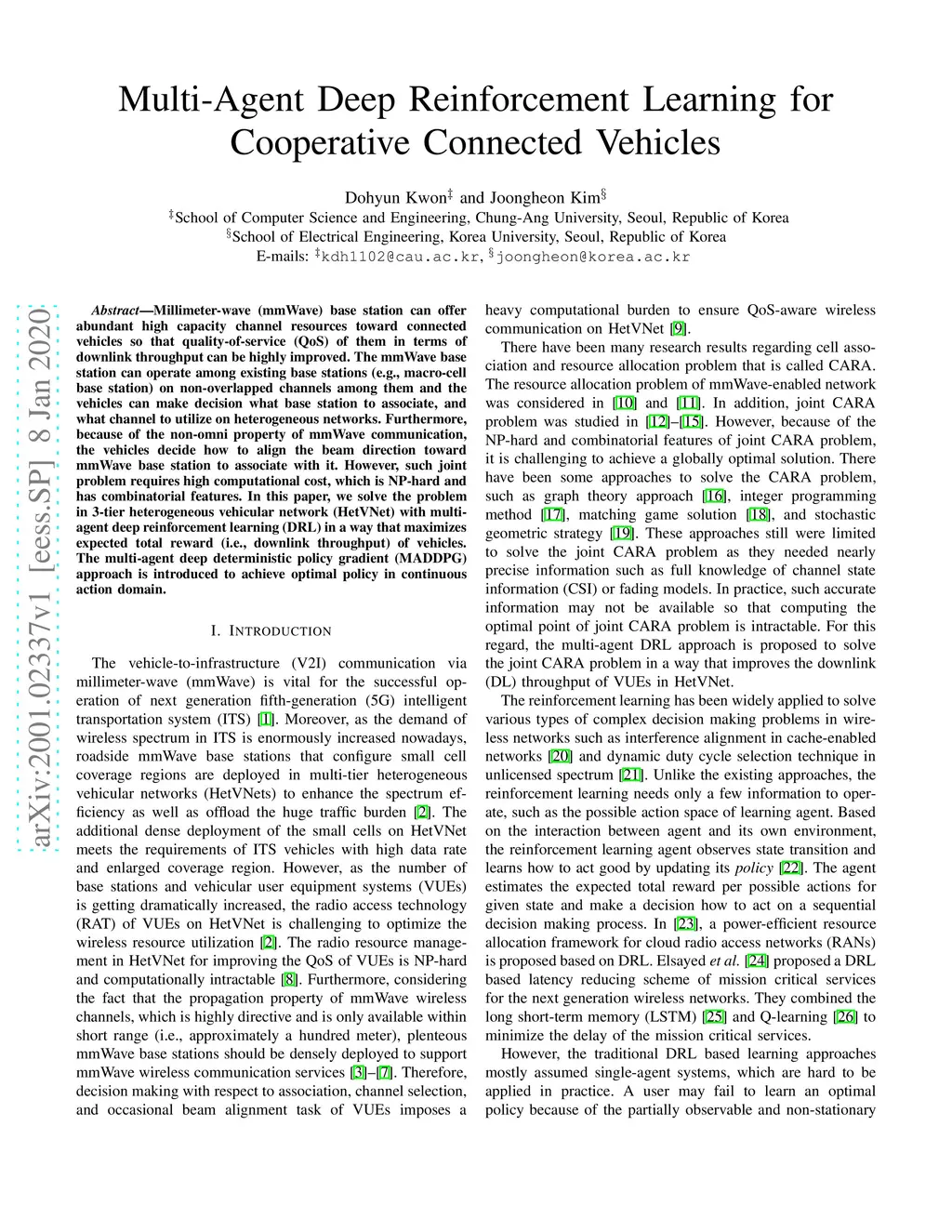 Multi-Agent Deep Reinforcement Learning for Cooperative Connected