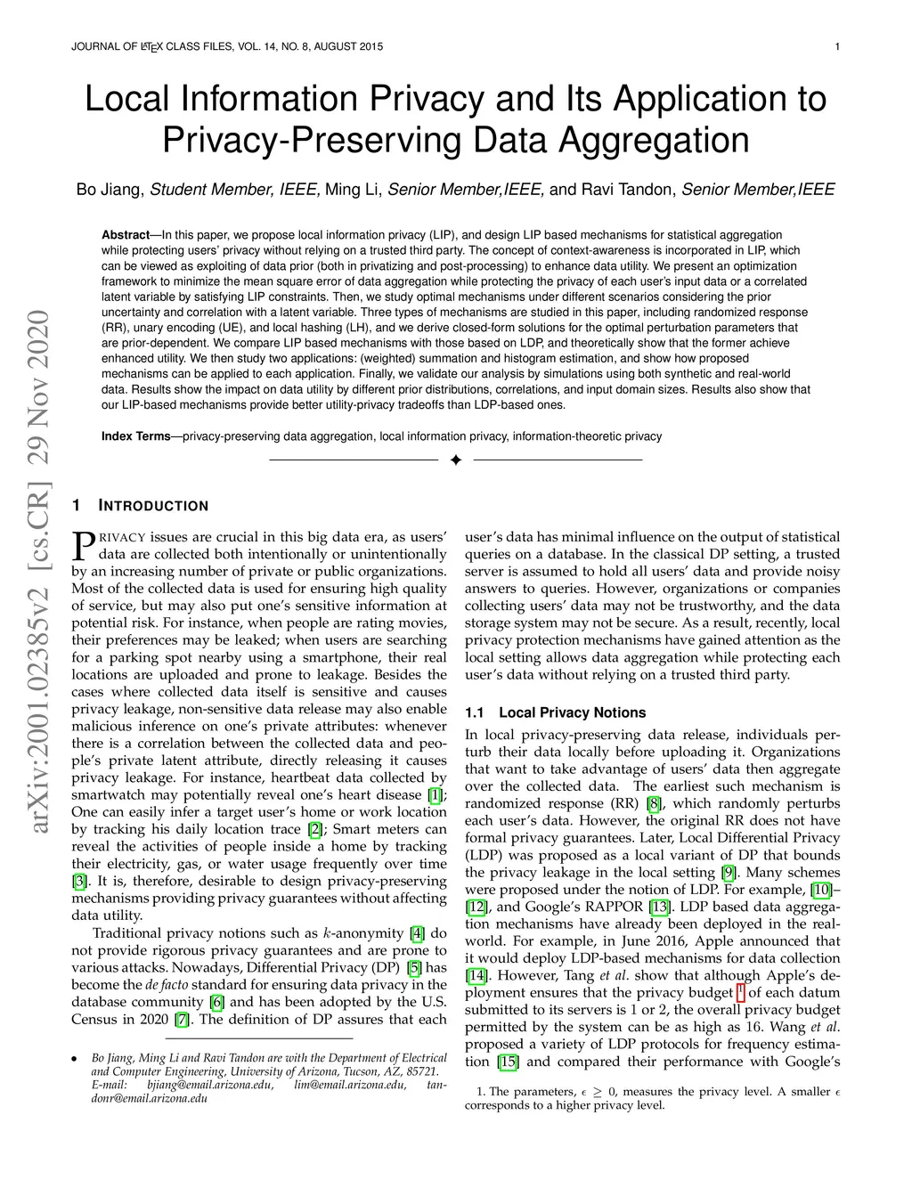 Local Information Privacy and Its Application to Privacy-Preserving Data