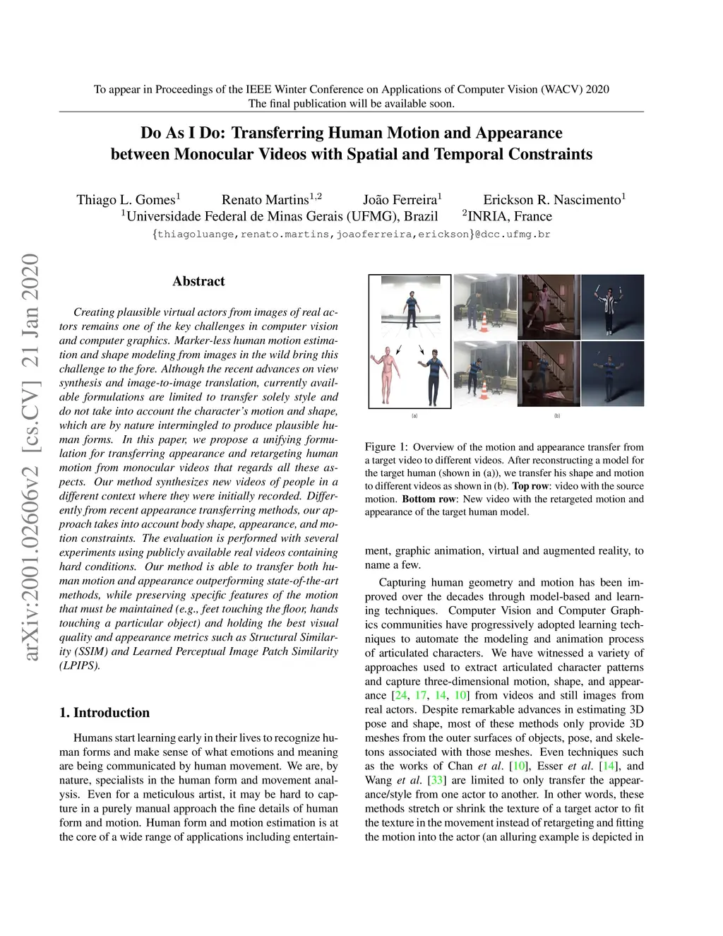 Do As I Do: Transferring Human Motion and Appearance between Monocular