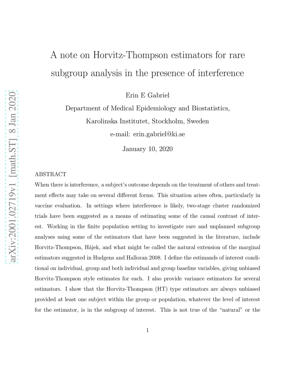 A note on Horvitz-Thompson estimators for rare subgroup analysis in the
