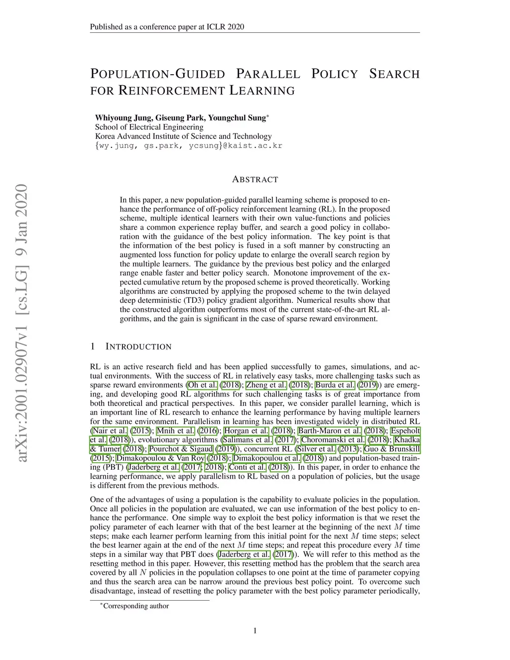 Population-Guided Parallel Policy Search for Reinforcement Learning