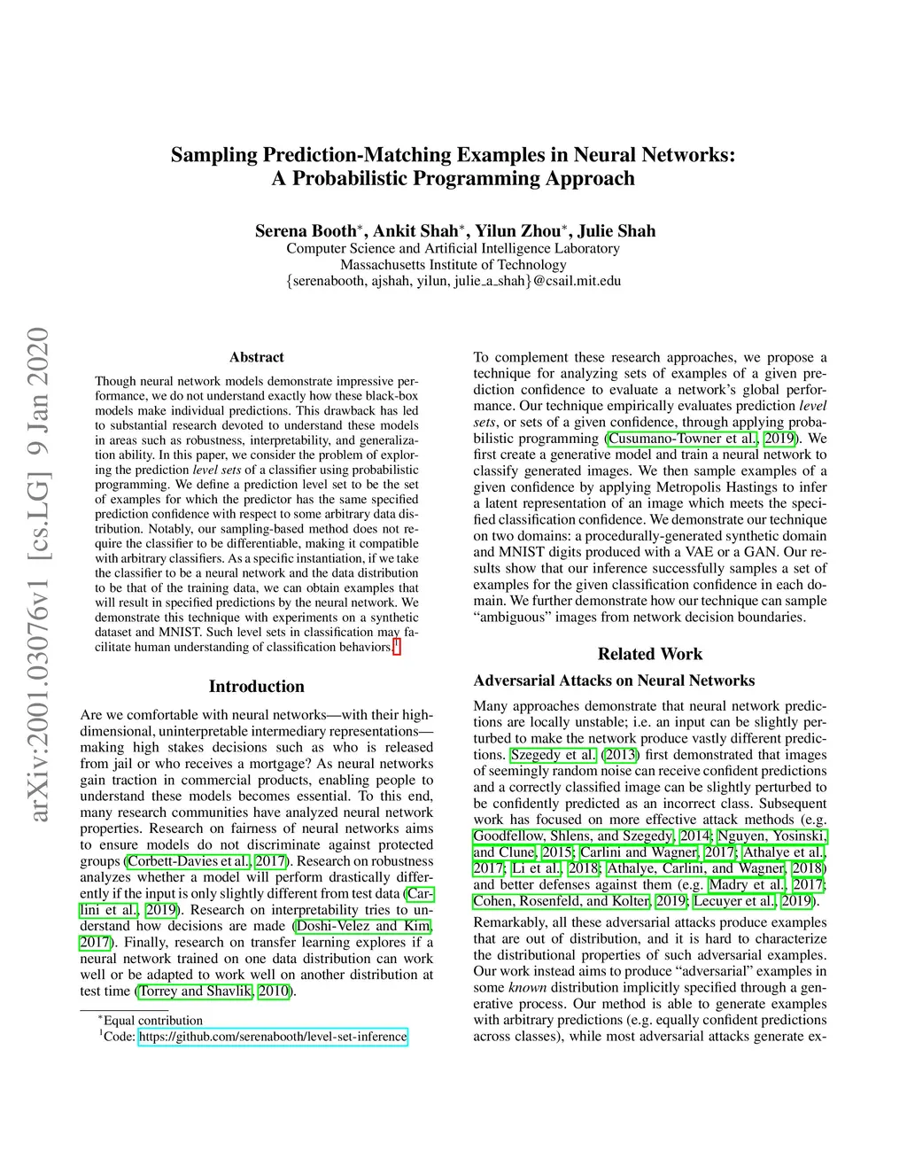 Though neural network models demonstrate impressive performance, we do not understand exactly how these black-box models make individual predictions. This drawback has led to substantial research devoted to understand these models in areas such as robustness, interpretability, and generalization ability. In this paper, we consider the problem of exploring the prediction level sets of a classifier using probabilistic programming. We define a prediction level set to be the set of examples for which the predictor has the same specified prediction confidence with respect to some arbitrary data distribution. Notably, our sampling-based method does not require the classifier to be differentiable, making it compatible with arbitrary classifiers. As a specific instantiation, if we take the classifier to be a neural network and the data distribution to be that of the training data, we can obtain examples that will result in specified predictions by the neural network. We demonstrate this technique with experiments on a synthetic dataset and MNIST. Such level sets in classification may facilitate human understanding of classification behaviors.