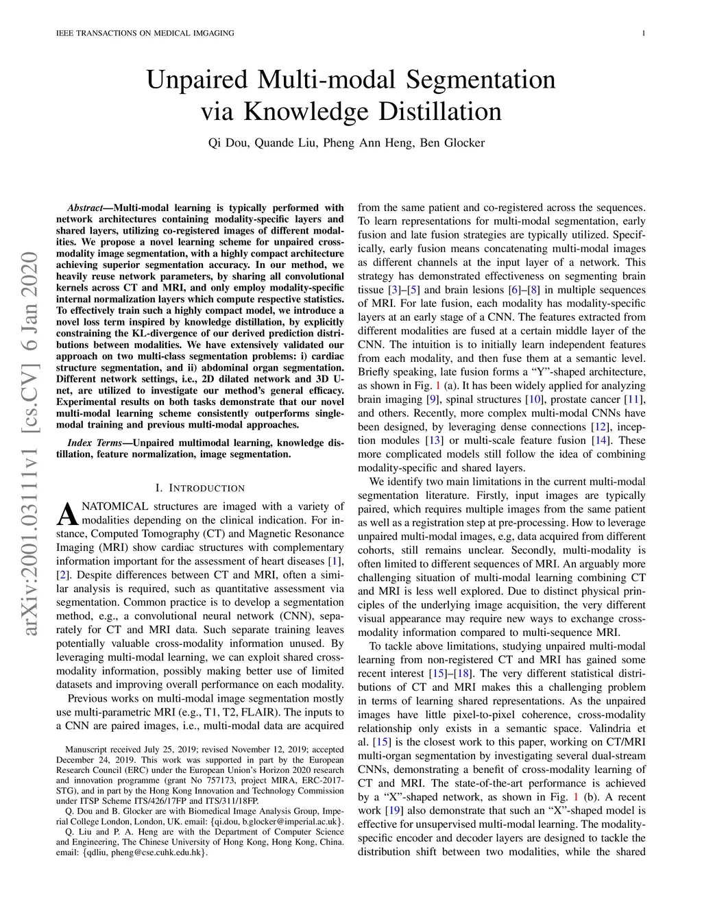 Unpaired Multi-modal Segmentation via Knowledge Distillation