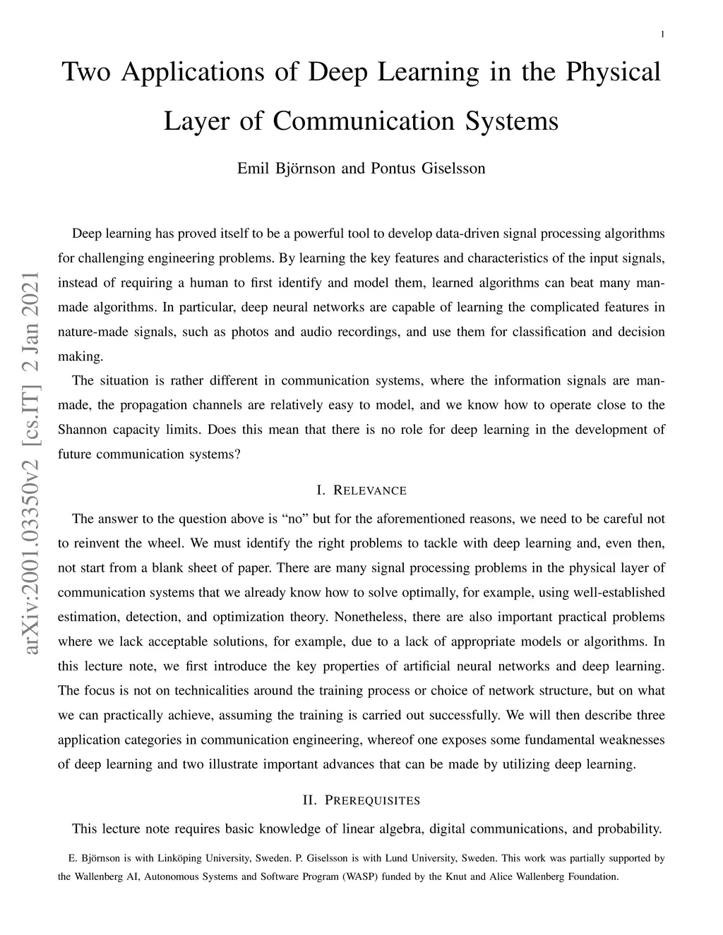 Two Applications of Deep Learning in the Physical Layer of Communication