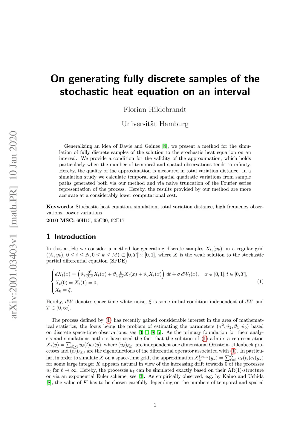 Generalizing an idea of Davie and Gaines (2001), we present a method for the simulation of fully discrete samples of the solution to the stochastic heat equation on an interval. We provide a condition for the validity of the approximation, which holds particularly when the number of temporal and spatial observations tends to infinity. Hereby, the quality of the approximation is measured in total variation distance. In a simulation study we calculate temporal and spatial quadratic variations from sample paths generated both via our method and via naive truncation of the Fourier series representation of the process. Hereby, the results provided by our method are more accurate at a considerably lower computational cost.