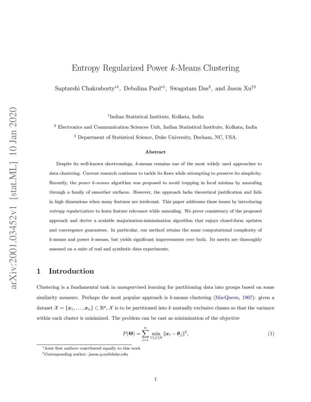 Entropy Regularized Power k-Means Clustering
