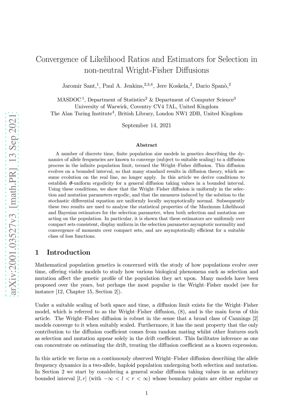 Convergence of Likelihood Ratios and Estimators for Selection in
