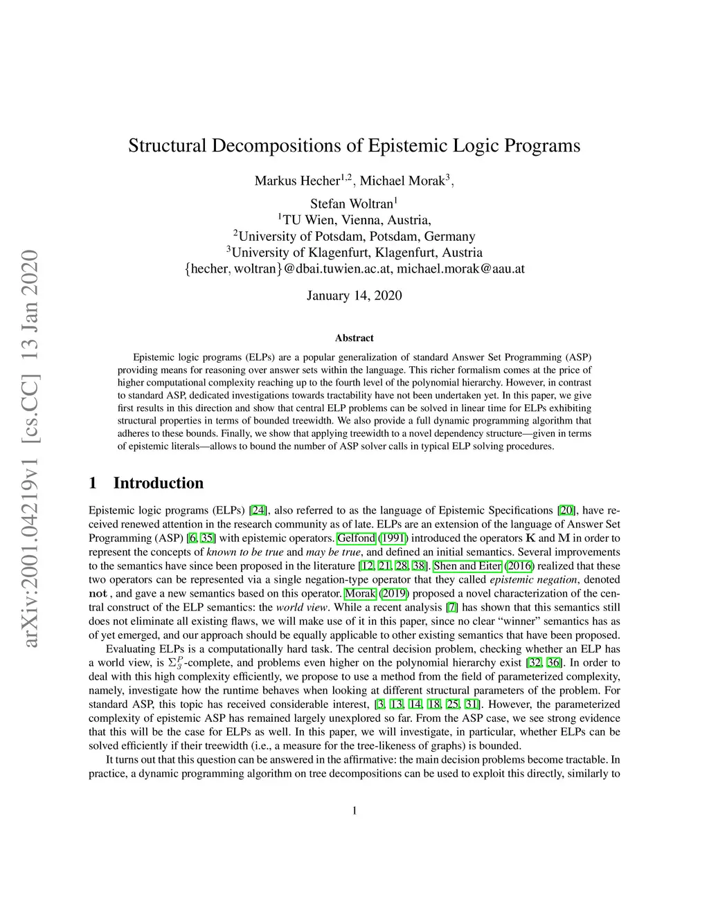 Epistemic logic programs (ELPs) are a popular generalization of standard Answer Set Programming (ASP) providing means for reasoning over answer sets within the language. This richer formalism comes at the price of higher computational complexity reaching up to the fourth level of the polynomial hierarchy. However, in contrast to standard ASP, dedicated investigations towards tractability have not been undertaken yet. In this paper, we give first results in this direction and show that central ELP problems can be solved in linear time for ELPs exhibiting structural properties in terms of bounded treewidth. We also provide a full dynamic programming algorithm that adheres to these bounds. Finally, we show that applying treewidth to a novel dependency structure---given in terms of epistemic literals---allows to bound the number of ASP solver calls in typical ELP solving procedures.