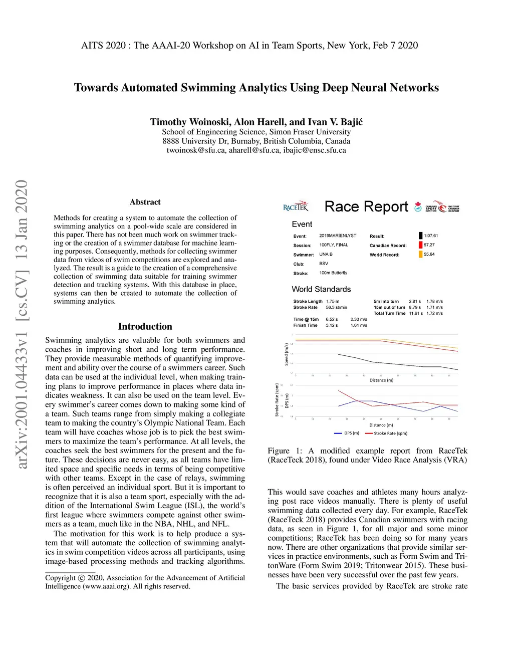 Towards Automated Swimming Analytics Using Deep Neural Networks