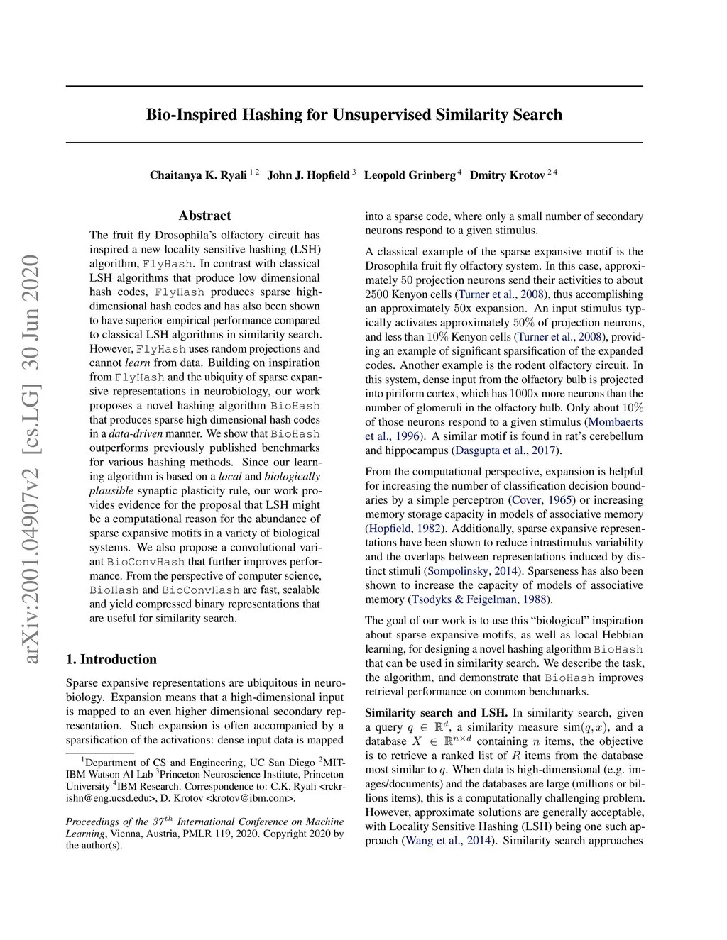 Bio-Inspired Hashing for Unsupervised Similarity Search
