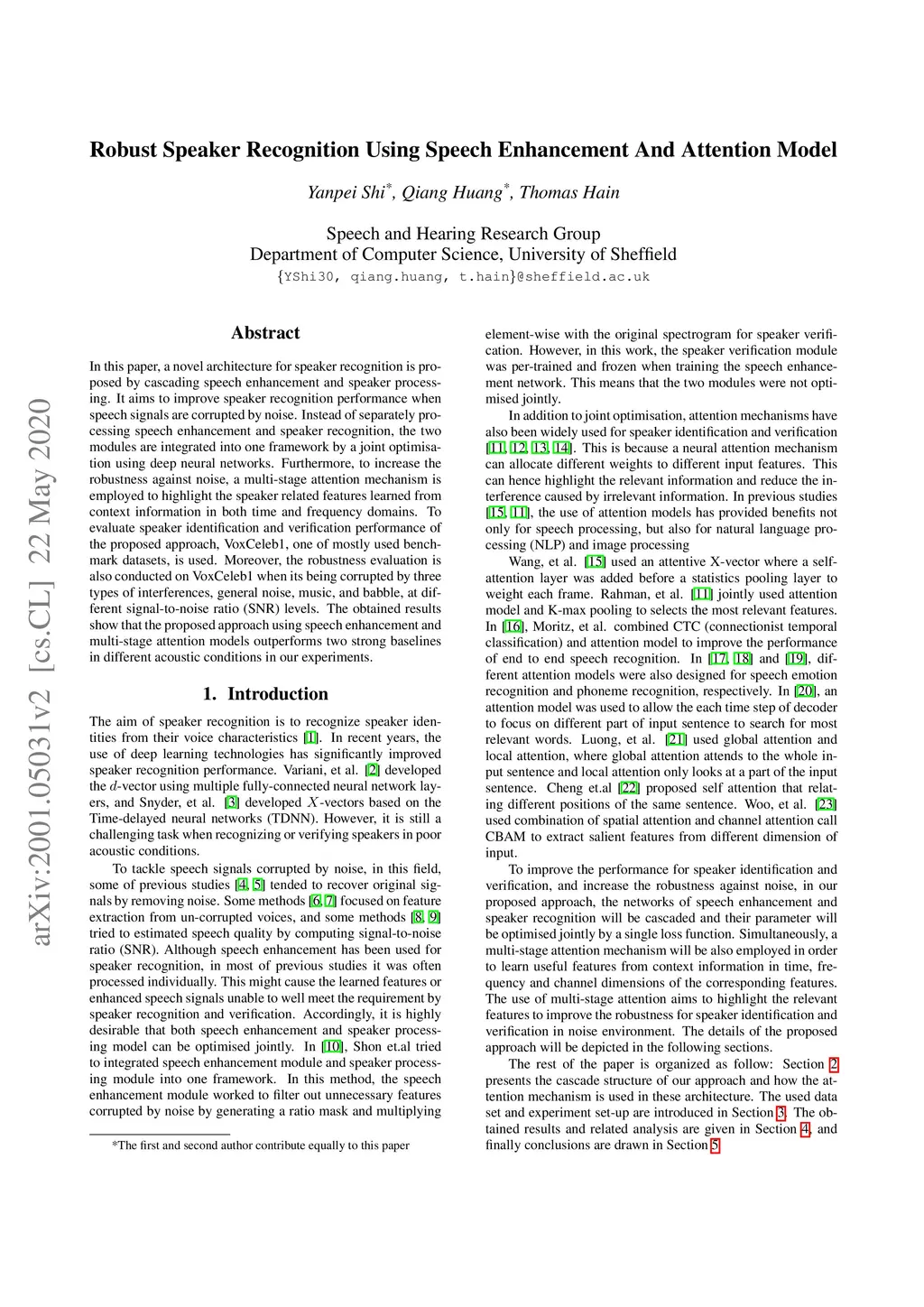 Robust Speaker Recognition Using Speech Enhancement And Attention Model