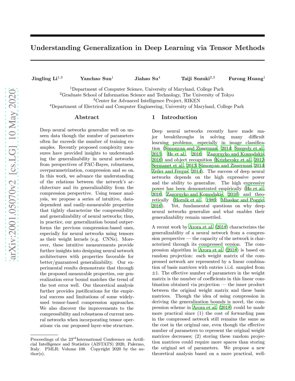 Understanding Generalization in Deep Learning via Tensor Methods