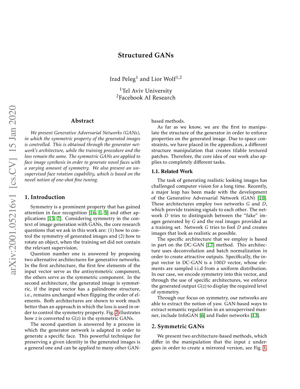 We present Generative Adversarial Networks (GANs), in which the symmetric property of the generated images is controlled. This is obtained through the generator network's architecture, while the training procedure and the loss remain the same. The symmetric GANs are applied to face image synthesis in order to generate novel faces with a varying amount of symmetry. We also present an unsupervised face rotation capability, which is based on the novel notion of one-shot fine tuning.