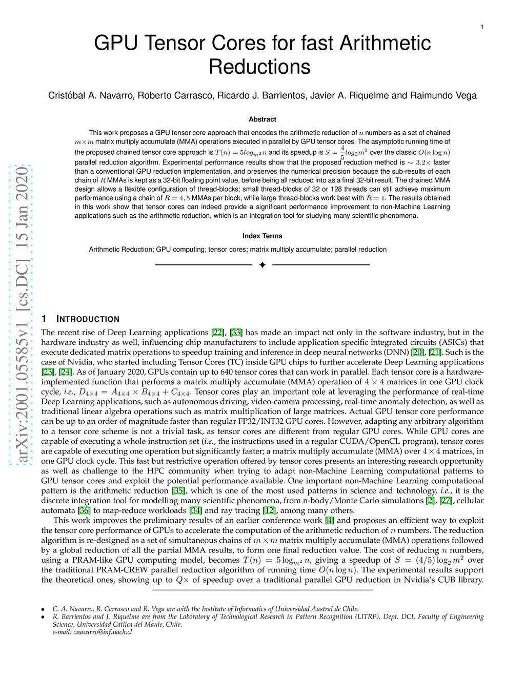 GPU Tensor Cores for fast Arithmetic Reductions