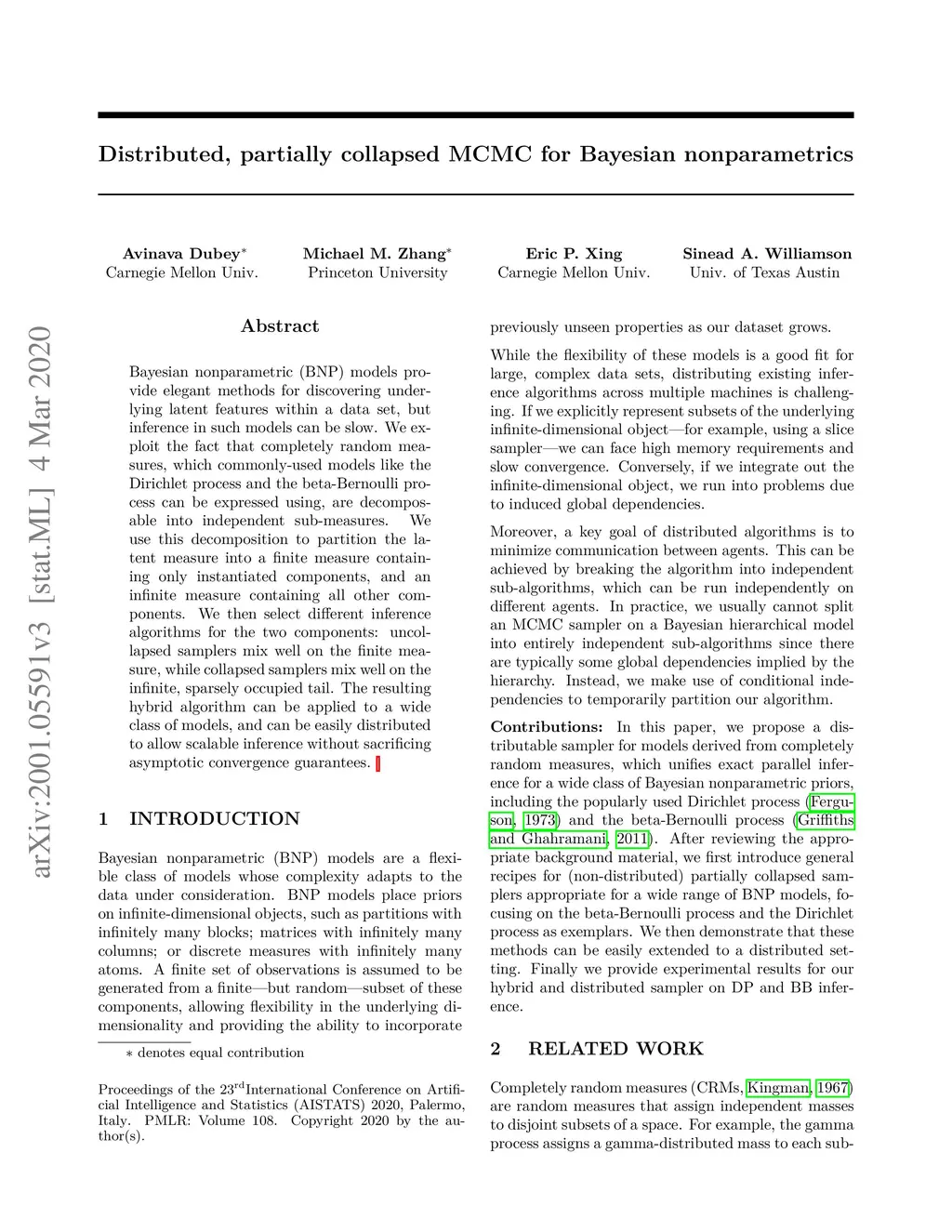 Distributed, partially collapsed MCMC for Bayesian Nonparametrics