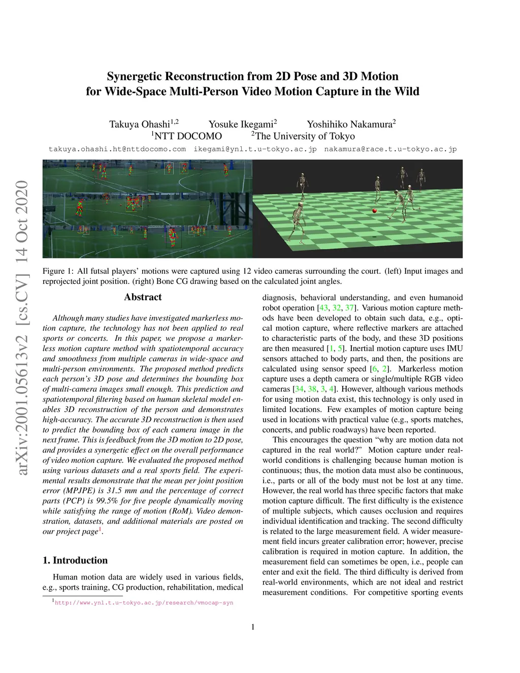 Synergetic Reconstruction from 2D Pose and 3D Motion for Wide-Space