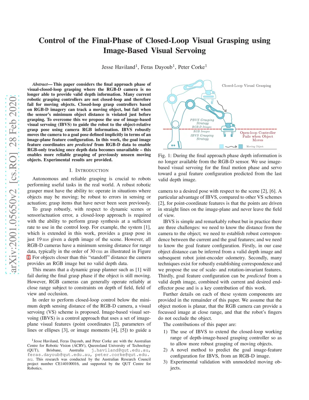 Control of the Final-Phase of Closed-Loop Visual Grasping using