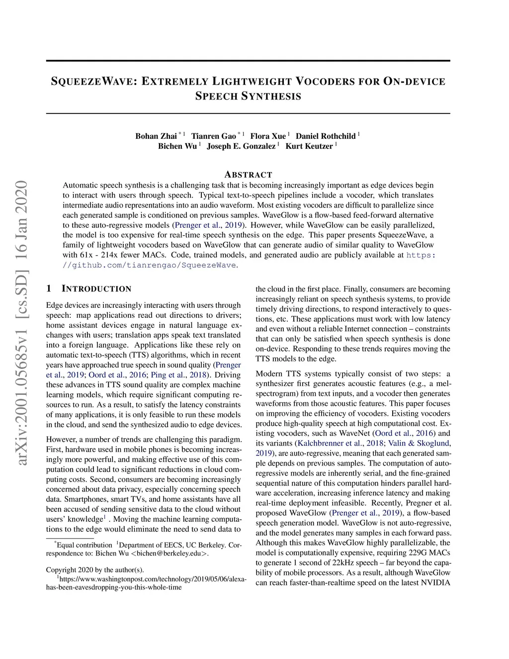 SqueezeWave: Extremely Lightweight Vocoders for On-device Speech