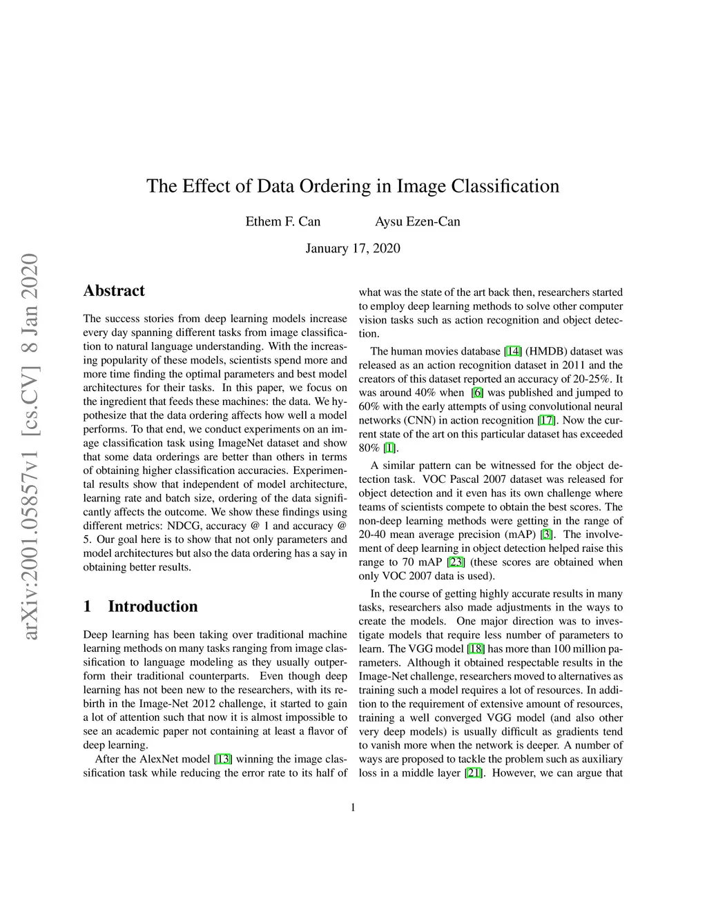 The success stories from deep learning models increase every day spanning different tasks from image classification to natural language understanding. With the increasing popularity of these models, scientists spend more and more time finding the optimal parameters and best model architectures for their tasks. In this paper, we focus on the ingredient that feeds these machines: the data. We hypothesize that the data ordering affects how well a model performs. To that end, we conduct experiments on an image classification task using ImageNet dataset and show that some data orderings are better than others in terms of obtaining higher classification accuracies. Experimental results show that independent of model architecture, learning rate and batch size, ordering of the data significantly affects the outcome. We show these findings using different metrics: NDCG, accuracy @ 1 and accuracy @ 5. Our goal here is to show that not only parameters and model architectures but also the data ordering has a say in obtaining better results.