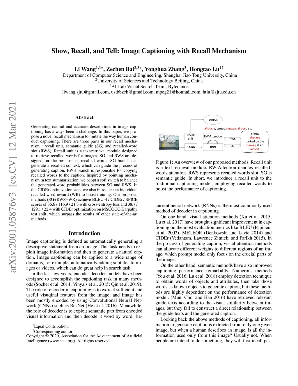 Show, Recall, and Tell: Image Captioning with Recall Mechanism