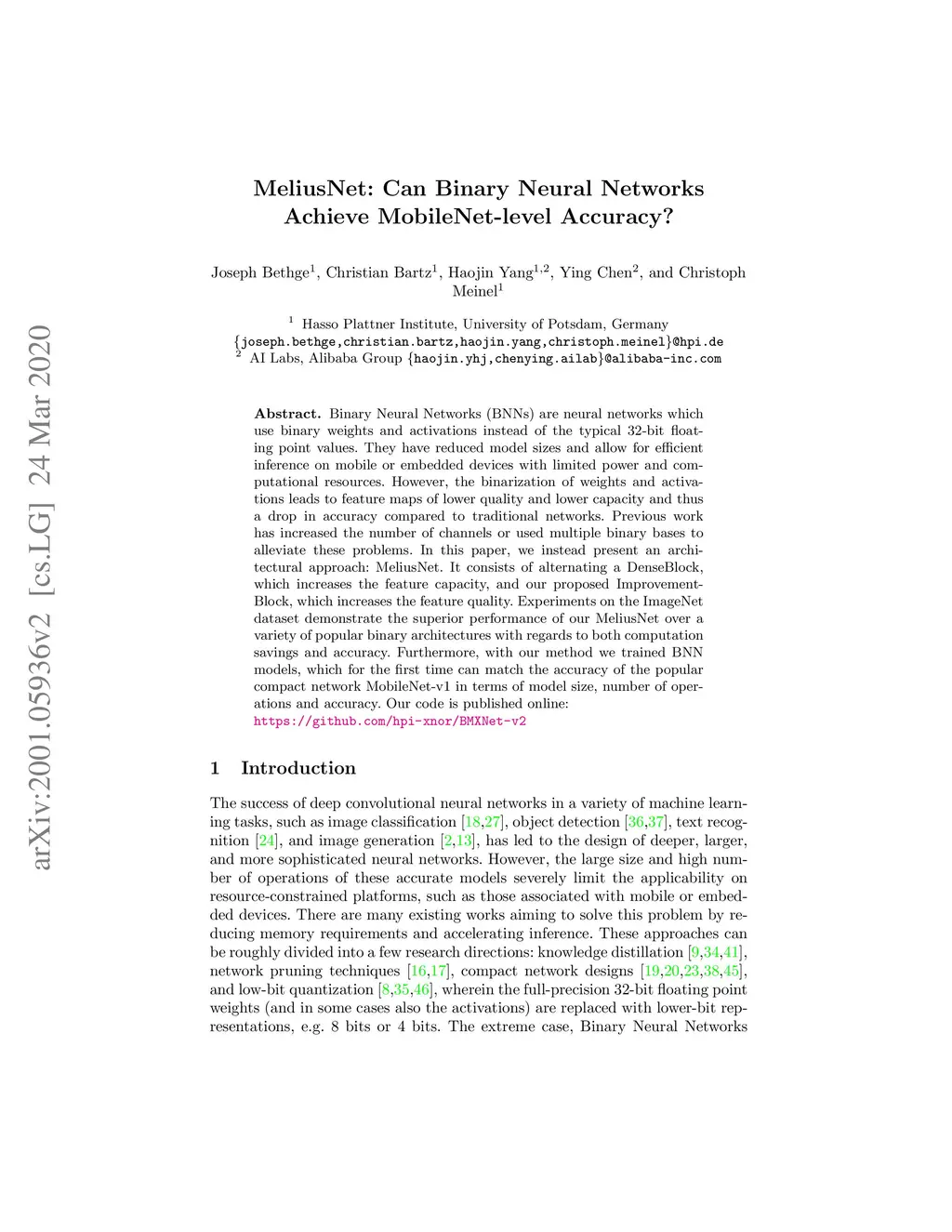 MeliusNet: Can Binary Neural Networks Achieve MobileNet-level Accuracy?