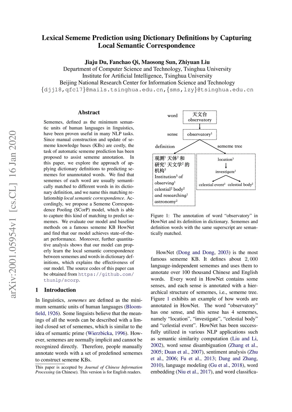 Lexical Sememe Prediction using Dictionary Definitions by Capturing