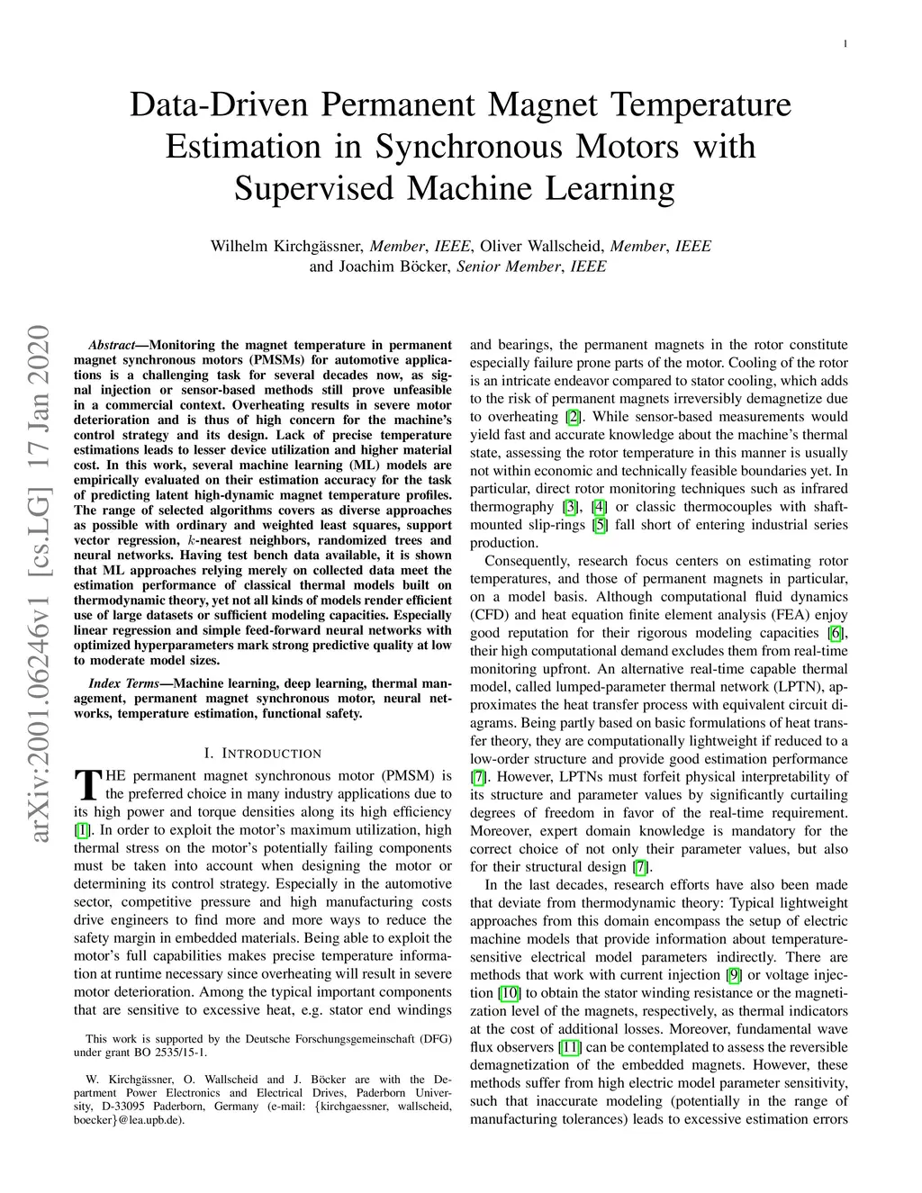 Data-Driven Permanent Magnet Temperature Estimation in Synchronous