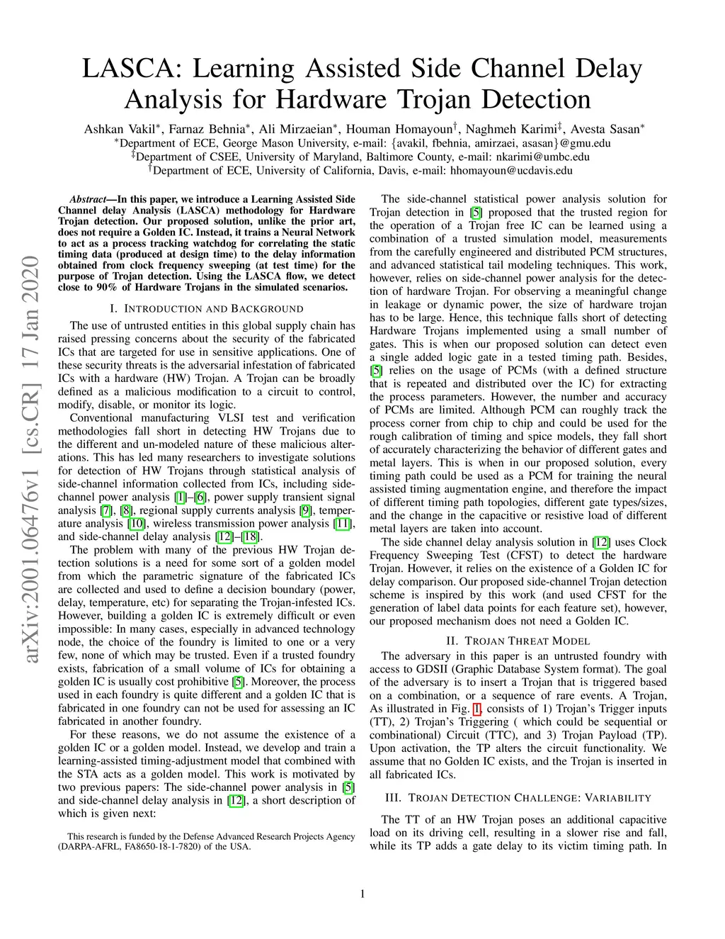 LASCA: Learning Assisted Side Channel Delay Analysis for Hardware Trojan