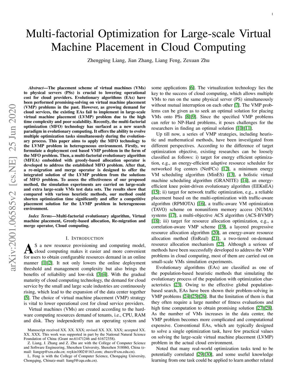 Multi-factorial Optimization for Large-scale Virtual Machine Placement