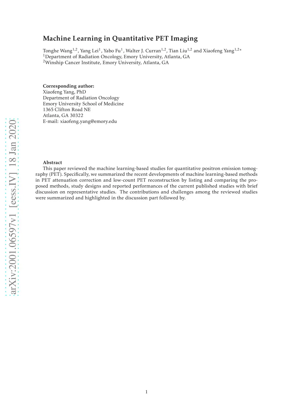 This paper reviewed the machine learning-based studies for quantitative positron emission tomography (PET). Specifically, we summarized the recent developments of machine learning-based methods in PET attenuation correction and low-count PET reconstruction by listing and comparing the proposed methods, study designs and reported performances of the current published studies with brief discussion on representative studies. The contributions and challenges among the reviewed studies were summarized and highlighted in the discussion part followed by.