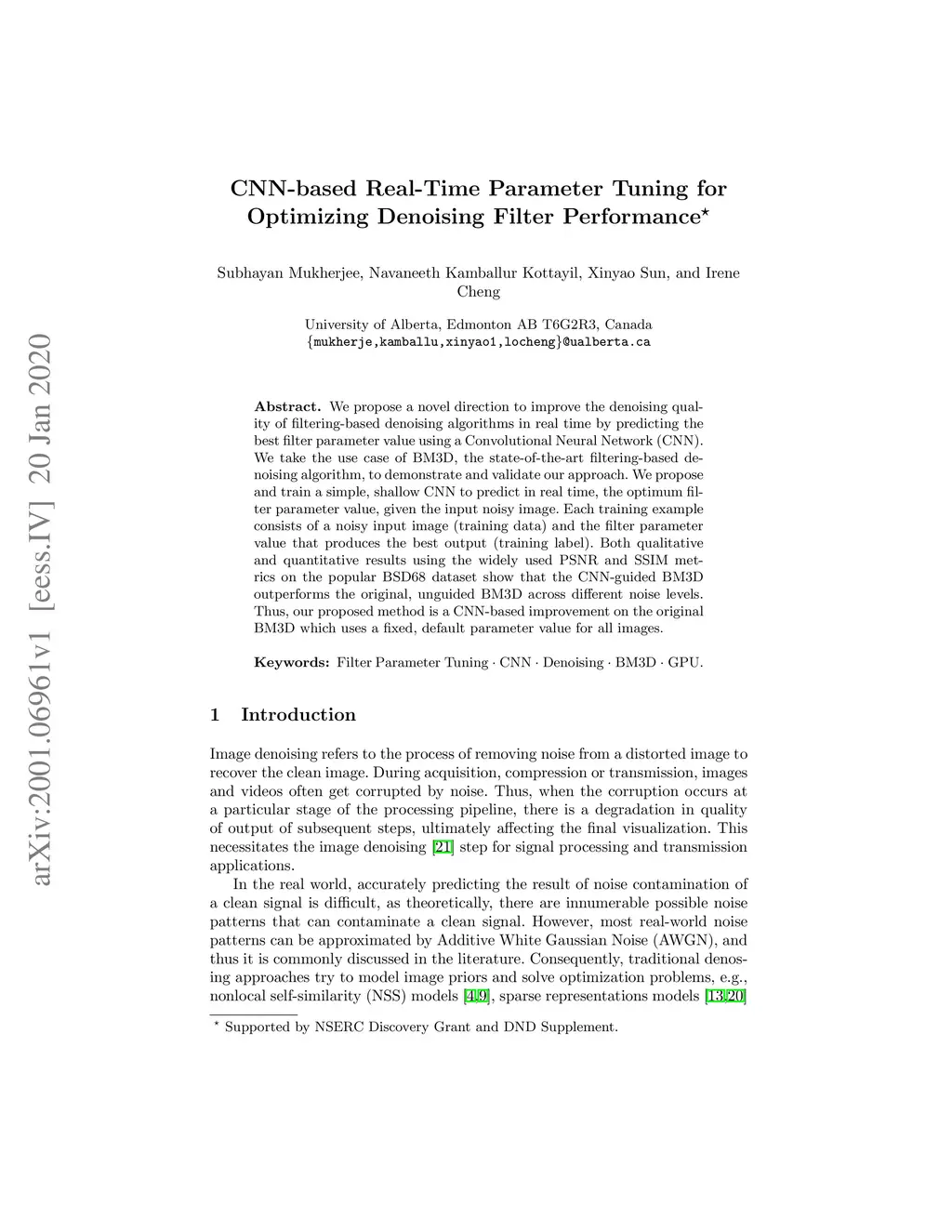 CNN-Based Real-Time Parameter Tuning for Optimizing Denoising Filter