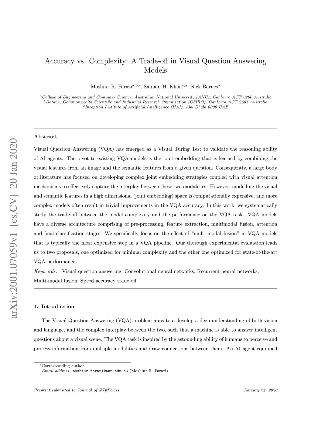Accuracy vs. Complexity: A Trade-off in Visual Question Answering Models